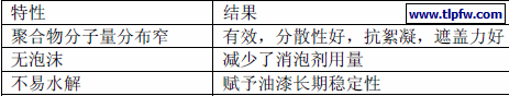 用来分散亲水性颜料和填料,诸如二氧化钛、碳酸钙、硫酸钡、氧化铁,强烈吸附在颜填料表而并降低研磨浆的粘度。对于强疏水性颜料,如大多数有机颜料,就要将NUOSPERSE FX 504或FX 505与其他润湿剂一起使用,如NUOSPERSE FN 1566或NUOSPERSE FN 265,可防止絮凝、浮色、发花和颜料沉降。贮存时不会起泡沫和降解,使涂料性能好和稳定。