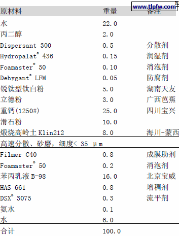 内墙平光乳胶漆推荐配方: