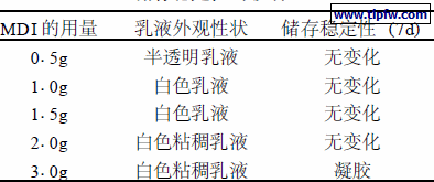 31111 MDI 的用量对PU 乳液外观性状及储存稳定性的影响
