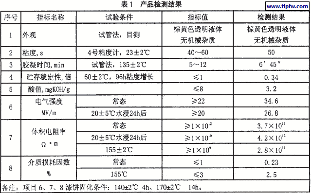 产品性能按GB/T15023—93《电气绝缘无溶剂可聚合树脂复合物试验方法》检测。
